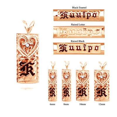 14K Rose Gold Single Initial Hawaiian Pendant with Hand Carved Diamond Heart