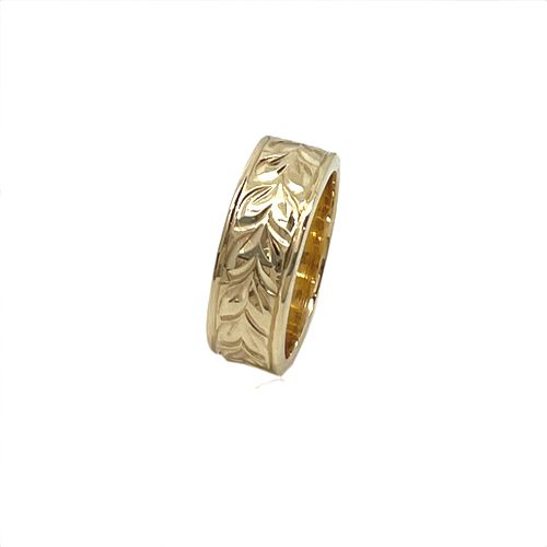 14KT Gold Diamond Plumeria Hawaiian 4mm Pinky Ring