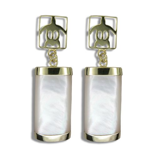 14KT Yellow Gold Honu with Long Bar Shaped MOP (Mother of Pearl Shell) Earrings. These earrings are made with 14kt yellow gold with long bar shaped MOP (Mother of Pearl Shell). The MOP is 5/16" in width and 3/4 "in length. Total length is 1 1/8 inches.