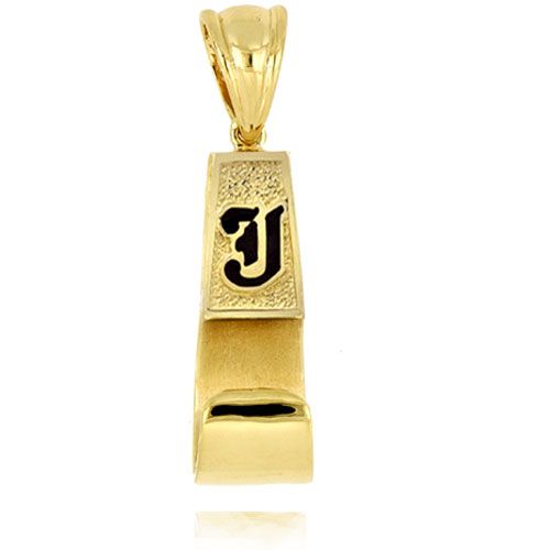 14KT Yellow Gold Large Hawaiian Palao Hook with Raised Black Initial Letter