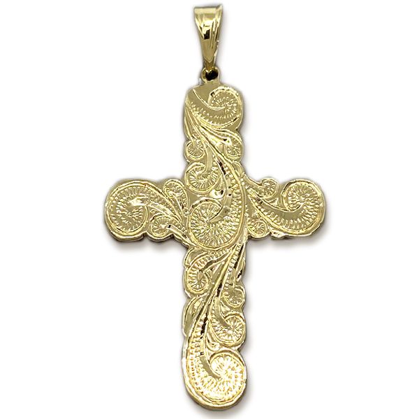 14KT Yellow Gold X Large Hand Scrolled Cross Pendant