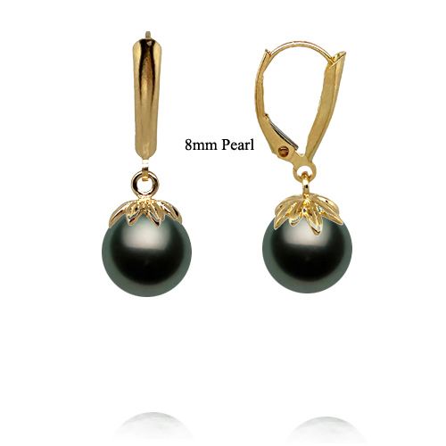 14kt Yellow Gold 8mm Plumeria AAA Tahitian Pearl Pierced Earrings