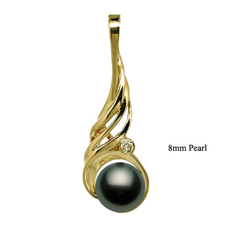 The 14KT gold pendant is 1 5/8 inches by 3/8" with waterfalls designs. The diamond is 0.05ct. The bail will fit up to 2mm chain. You may choose the Tahitian pearls from 8mm to 10mm. we guarantee they are 100% natural color and have never been treated in any way. We pick only the best 5% finest pearls to be set on our jewelry.