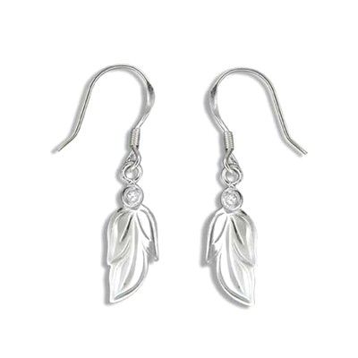 Fine Engraved Sterling Silver Maile Leaf with CZ Fish Wire Earrings