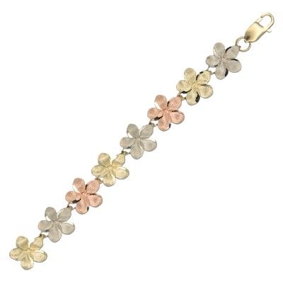14KT Tri-Color Gold Hawaiian 10mm Plumeria Bracelet