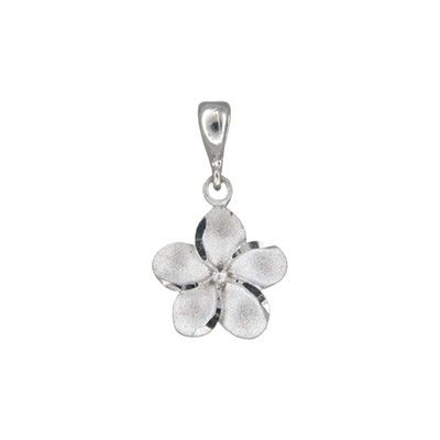 14kt White Gold Hawaiian Plumeria 12mm Pendant. Pendant is 1/2" in diameter. The entire flower is sand finished with diamond cut edges on each petals.