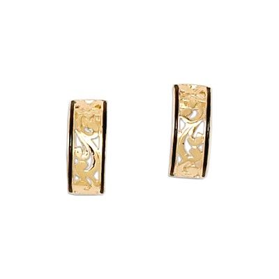 14kt Yellow Gold Cut-In Plumeria and Scroll Half-Hoop Earrings with Black Border