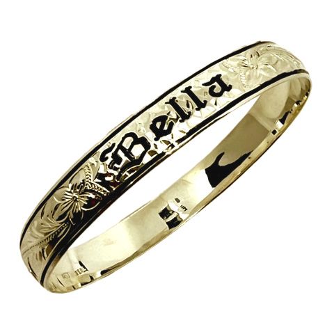 14K Yellow Gold Custom Hawaiian Bangle Bracelet with Black Borders