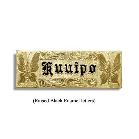 14K Yellow Gold Hawaiian Butterfly Custom Rectangle Name Plate