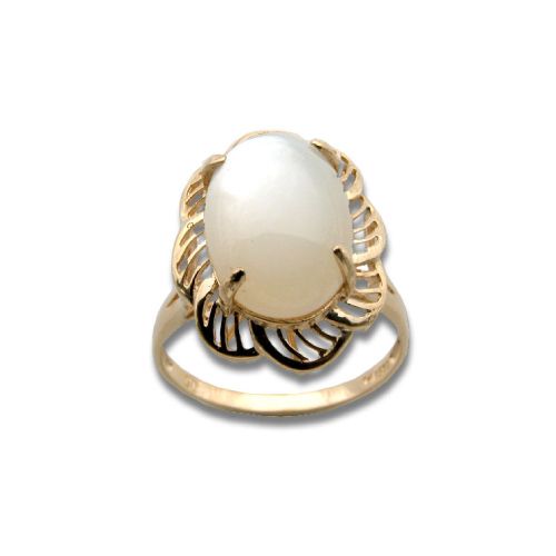 14KT Yellow Gold Cut-Out Flower Design with Oval Shaped MOP (Mother of Pearl Shell) Ring. The ring is always appropriate and gorgeous, it is a timeless classic, and it belongs in every jewelry wardrobe.