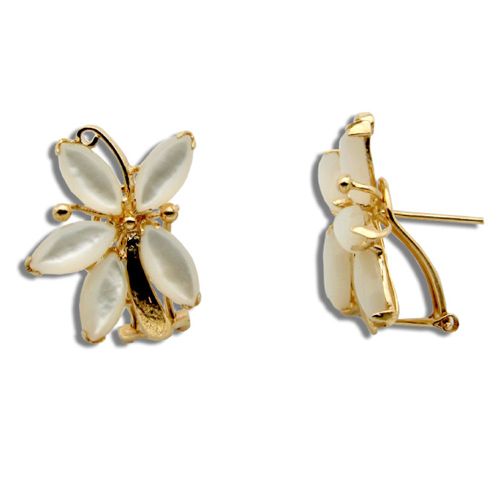 14KT Yellow Gold MOP (Mother of Pearl Shell) 5 Petals Flower French Clip Earrings