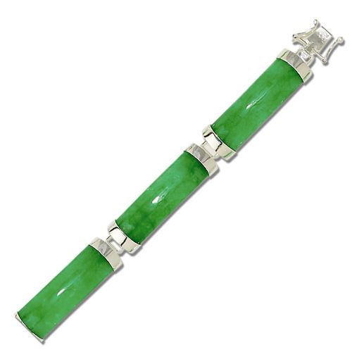 Sterling Silver Good Fortune Green Jade Bar Bracelet
