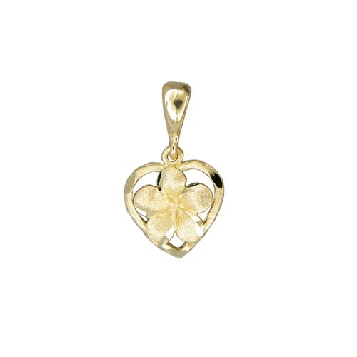 14Kt Gold Hawaiian 8mm Plumeria Heart Pendant