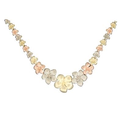 14kt Tri-Color Gold Hawaiian Plumeria Graduated Necklace
