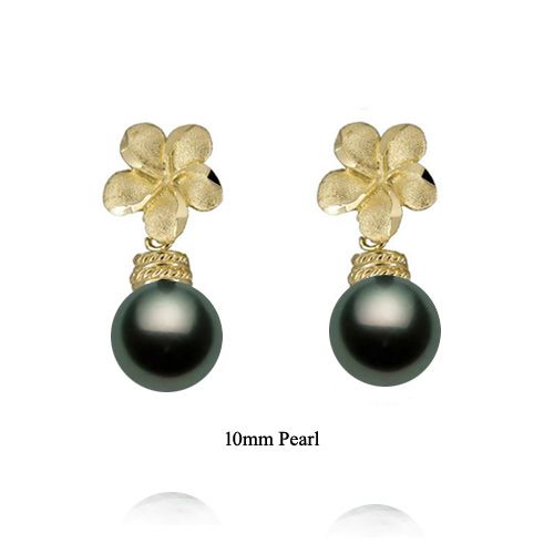 14kt Yellow Gold 6mm Plumeria Pearl Setting Ring. The two Plumeria flowers are 1/4" in diameter and set on the both of the ring. Each petal on the Plumeria flower has sand finished and diamond cut on it. The AA Tahitian Pearl available in 8-10mm.