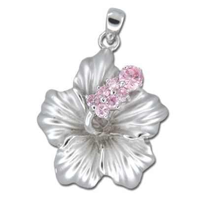Sterling Silver Hawaiian Hibiscus Pink CZ Pendant