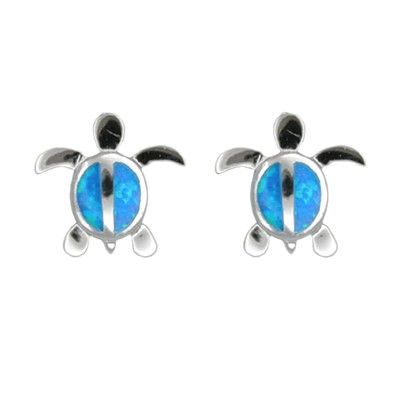 Sterling Silver Blue Opal Hawaiian Honu Pierced Earrings
