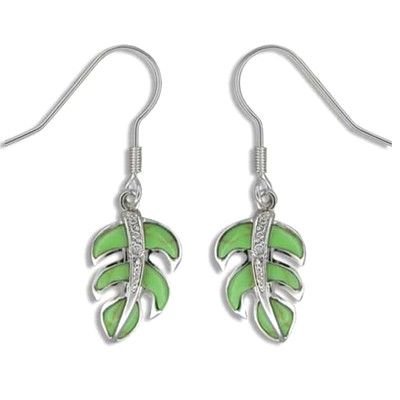 Sterling Silver Hawaiian Green Turquoise Monstera Fish Wire Earrings with CZ