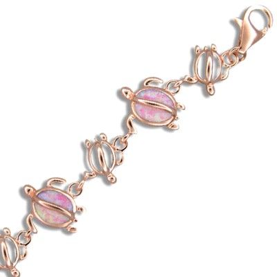 Sterling Silver Hawaiian Honu Pink Opal Bracelet