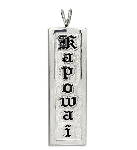 Sterling Silver Name Drop Hawaiian Pendant with Raised Black Enamel Letters