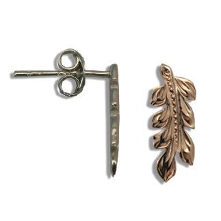 Fine Engraved Sterling Silver Rose Gold Coated Hawaiian Maile Leaf Earrings