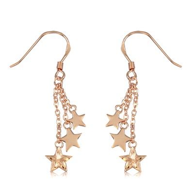 Fine Engraved Sterling Silver Rose Gold Plated Triple Hawaiian Star Dangling Earrings