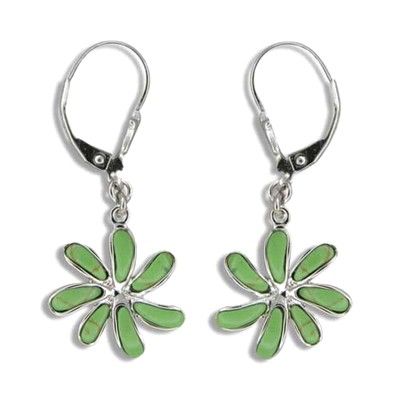 Sterling Silver Hawaiian Green Turquoise Tiare Flower Lever Back Earrings
