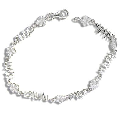 Sterling Silver Hawaiian Plumeria with Island Names Bracelet
