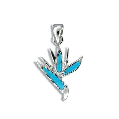 Sterling Silver White Turquoise Bird of Paradise Pendant. 3/4' by 1' with White Turquoise Inlay. This sterling silver pendant is finished with Rhodium to avoid tarnishing. Very stunning, can be worn with anything. Always appropriate and gorgeous, this pendant is a timeless classic, and it belongs in every jewelry wardrobe.
