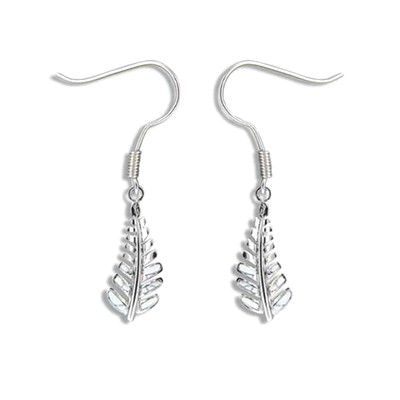 Sterling Silver Hawaiian Fern Leaf Fish Wire Earrings with White Turquoise Inlay. Each Fern Leaf is 5/8' by 1/4' with 6 hand polished inlay White Turquoise stones. Total length is 1 3/8'. In addition, these earrings are finished with Rhodium to avoid tarnishing. Always appropriate and gorgeous, these earrings are a timeless classic, and them belongs in every jewelry wardrobe.