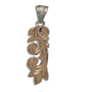 Fine Engraved Sterling Silver Rose Gold Coated Cut-Out Hawaiian Maile Leaf and Scroll Earrings. The Rhodium Finished earrings are 1/4" in width, 3/4" in length and engraved with Hawaiian Maile Leaf and Scroll design. These earrings are plated with 14kt Rose Gold on the Hawaiian Scroll design.