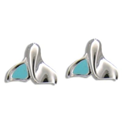 Sterling Silver Jumping Whale Tail with Blue Enamel Design Pierced Earrings. It is 1/2" by 3/8". In addition, these earrings are finished with Rhodium to avoid tarnishing.