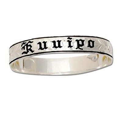 Sterling Silver 8mm "Kuuipo" Hawaiian Plumeria Design with Black Boarder Kid's Bangle and Plain Edge. 5/16" width and average over 8g in weight. There are Hawaiian Plumeria designs all around the bangle and the edges are plain design.