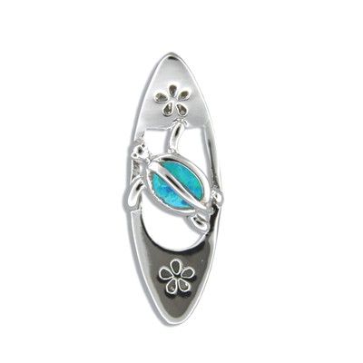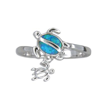 Sterling Silver Hawaiian Mother and Baby Honu Blue Opal Ring. 3/4" width with Blue Opal Inlay. Size 5 to 10 are available. This ring is made with sterling silver and finished with Rhodium to avoid tarnishing.