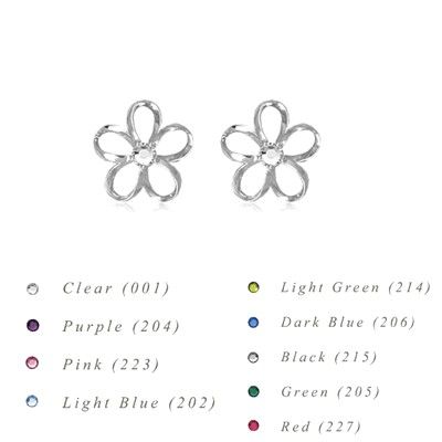 Sterling Silver 10MM Hawaiian Plumeria with Swarovski Crystal Earrings. 3/8" in diameter with Swarovski Crystal on the center of the Plumeria Flower. These earrings are made with Sterling Silver and Rhodium finished to avoid tarnishing. There are 9 different colors available. Always appropriate and gorgeous, These earrings are a timeless classic, and they belongs in every jewelry wardrobe.