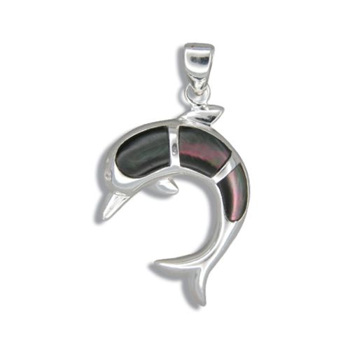 Sterling Silver Hawaiian MOP (Mother of Pearl Shell) Jumping Dolphin Pendant