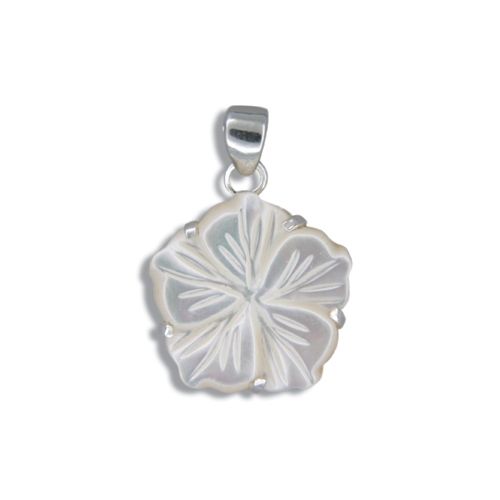 Sterling Silver Hawaiian Plumeria 18mm MOP (Mother of Pearl Shell) Pendant