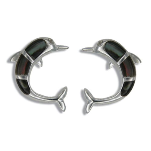 Sterling Silver MOP (Mother of Pearl Shell) Hawaiian Jumping Dolphin Pierced Earrings