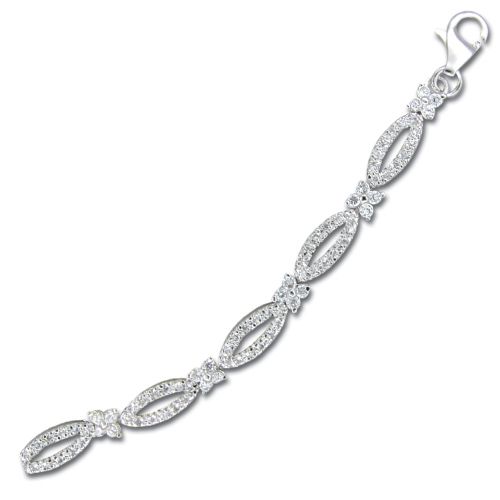 Sterling Silver Flower and Ribbon with Clear CZ Bracelet