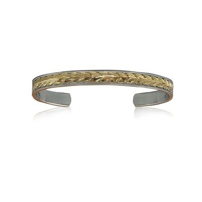 Sterling Silver Hawaiian 14K Yellow Two Tone Maile Cuff 6mm Bangle