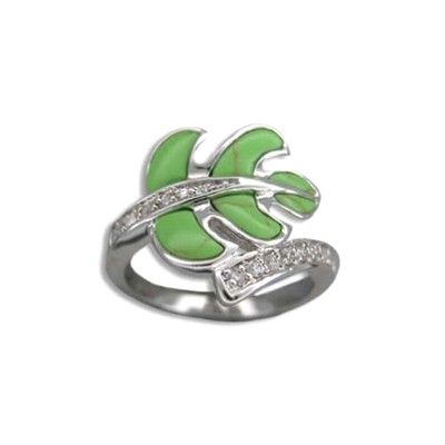 Sterling Silver Hawaiian Green Turquoise Monstera Leaf Pendant with CZ