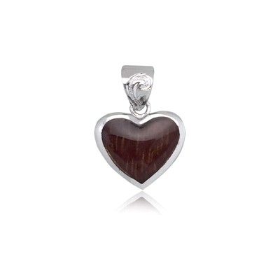 Sterling Silver Hawaiian Koa Wood Heart in Circle Pendant. This Heart in Circle with Hawaiian Koa Wood Inlay pendant is made with sterling silver and finished with Rhodium to avoid tarnishing.