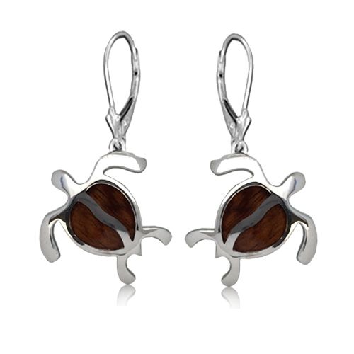 Sterling Silver Hawaiian Koa Wood (S) HONU Lever Backs Earrings