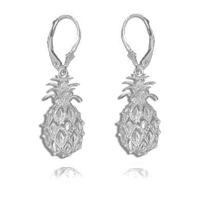 Sterling Silver Hawaiian (M) Pineapple Earrings with Lever Back