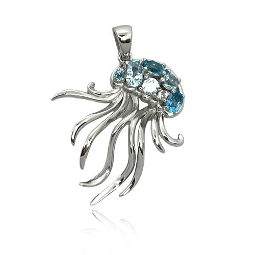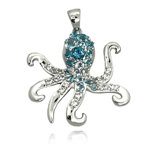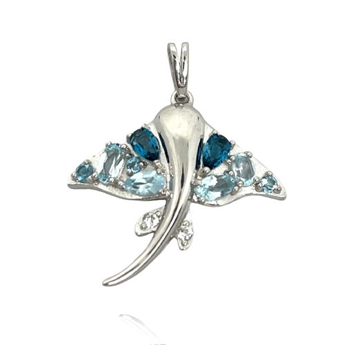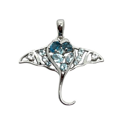 Sterling Silver Mixed Shades Blue Topaz Stingray Pendant