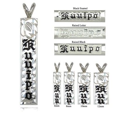 Sterling Silver Custom Hawaiian Vertical Pendant hand carved with Turtle on top of the name. 1.75mm in thickness. You may have up to 10 letters on this traditional pendant.