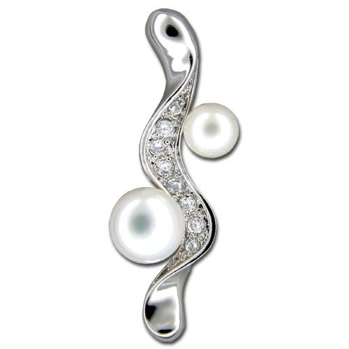 Sterling Silver Swirl with CZ and Double Fresh Water Pearl Pendant