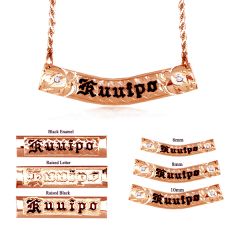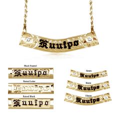 For those who prefer the luxurious look of gold, our 14KT gold personalized Hawaiian necklaces are sure to impress. These necklaces feature intricate designs and sparkling accents, making them the perfect choice for a special occasion or a night out on the town. Whether you choose to have your name in Hawaiian or English, we have a 14KT gold personalized Hawaiian necklace to suit your style.