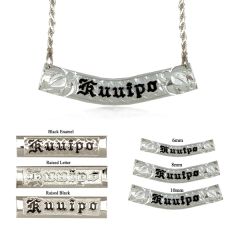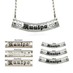 If you prefer the timeless elegance of sterling silver, our selection of sterling silver personalized Hawaiian necklaces is sure to please. With delicate designs and intricate detailing, these necklaces are the perfect way to add a touch of island charm to any outfit, while also showcasing your personal style. Choose from a range of styles, from simple and elegant to bold and dramatic, and have your name added in either Hawaiian or English.
